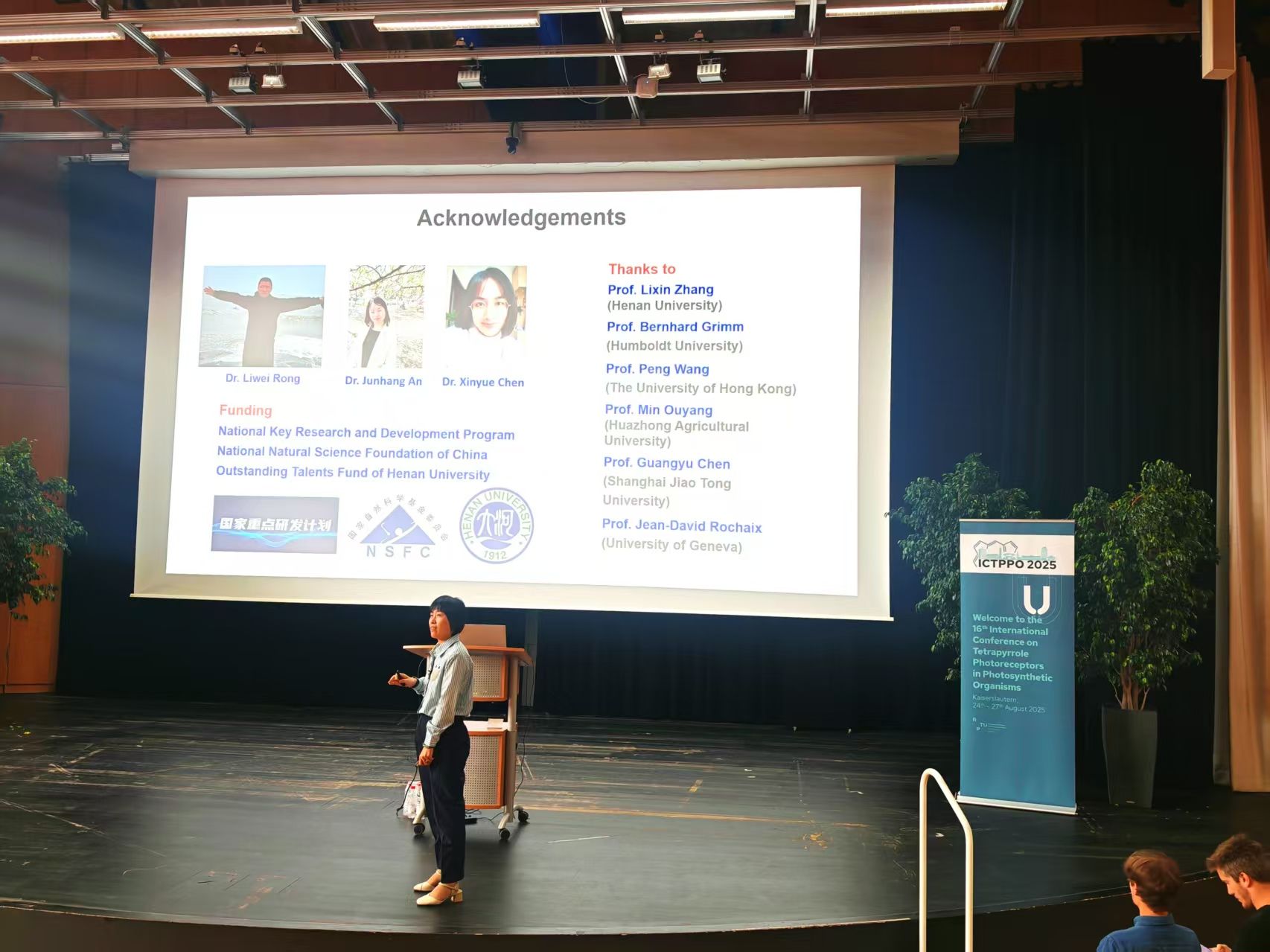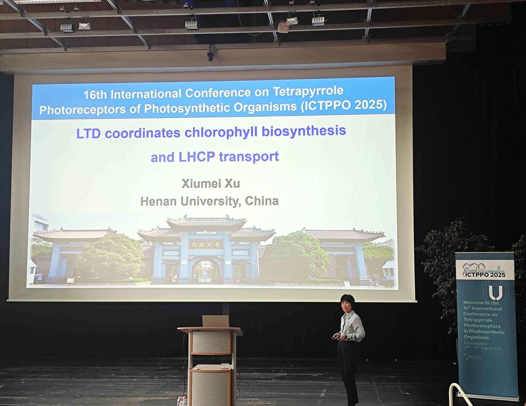 代表团成员徐秀美教授在大会上作专题学术报告《LTD协调叶绿素生物合成和LHCP蛋白转运》(LTD coordinates chlorophyll biosynthesis and LHCP transport),系统分享了团队在该领域的最新研究成果,引起与会专家的高度关注和热烈讨论。报告展示了河南大学在该研究方向的特色与优势,提升了学校在国际学术界的影响力。