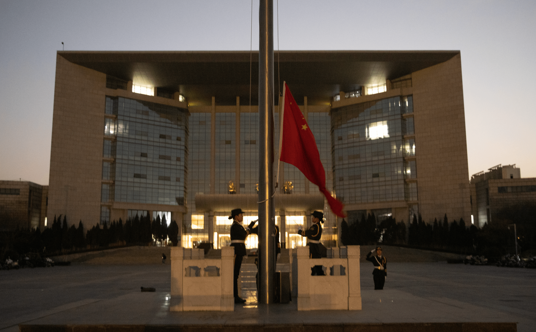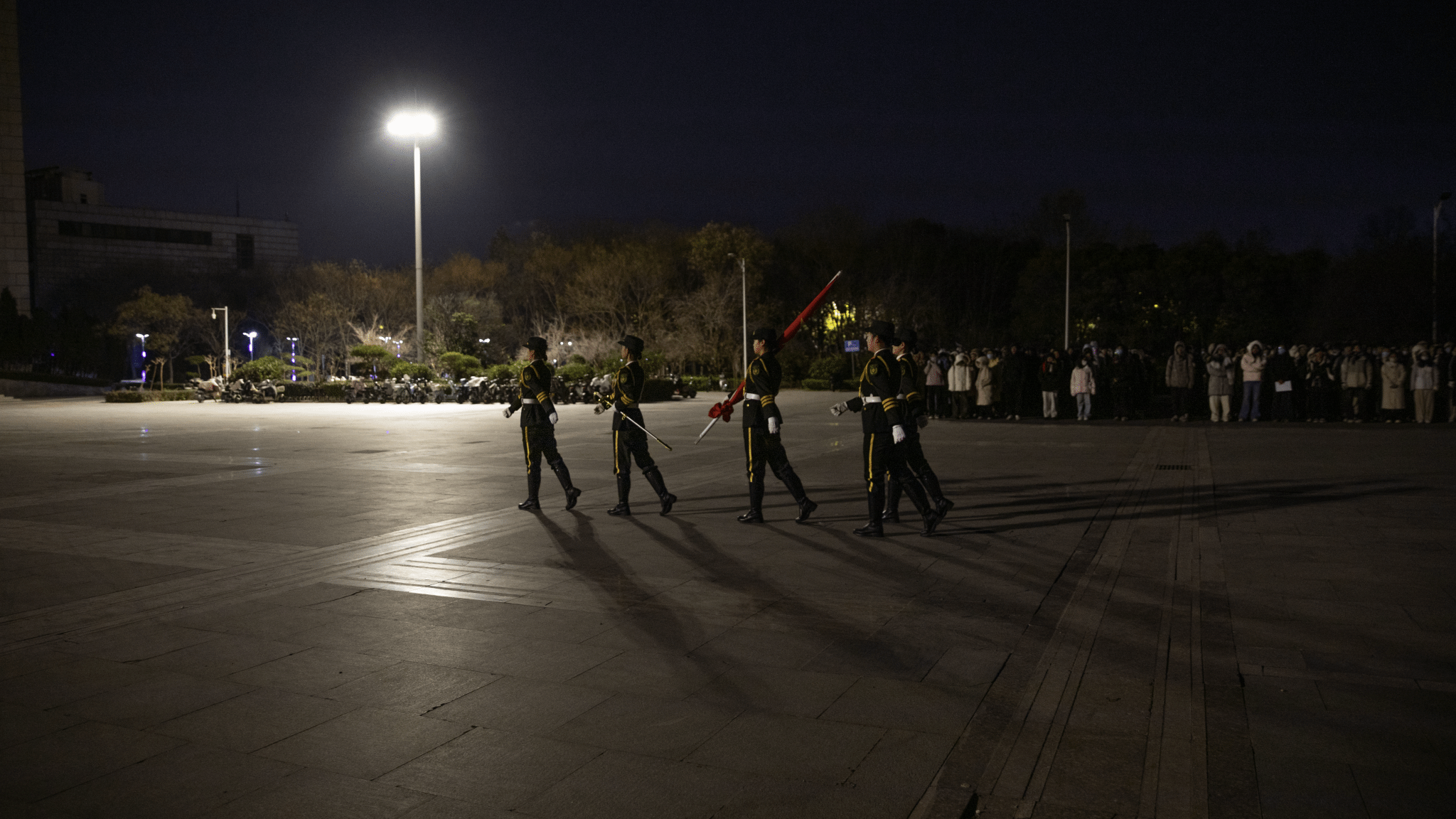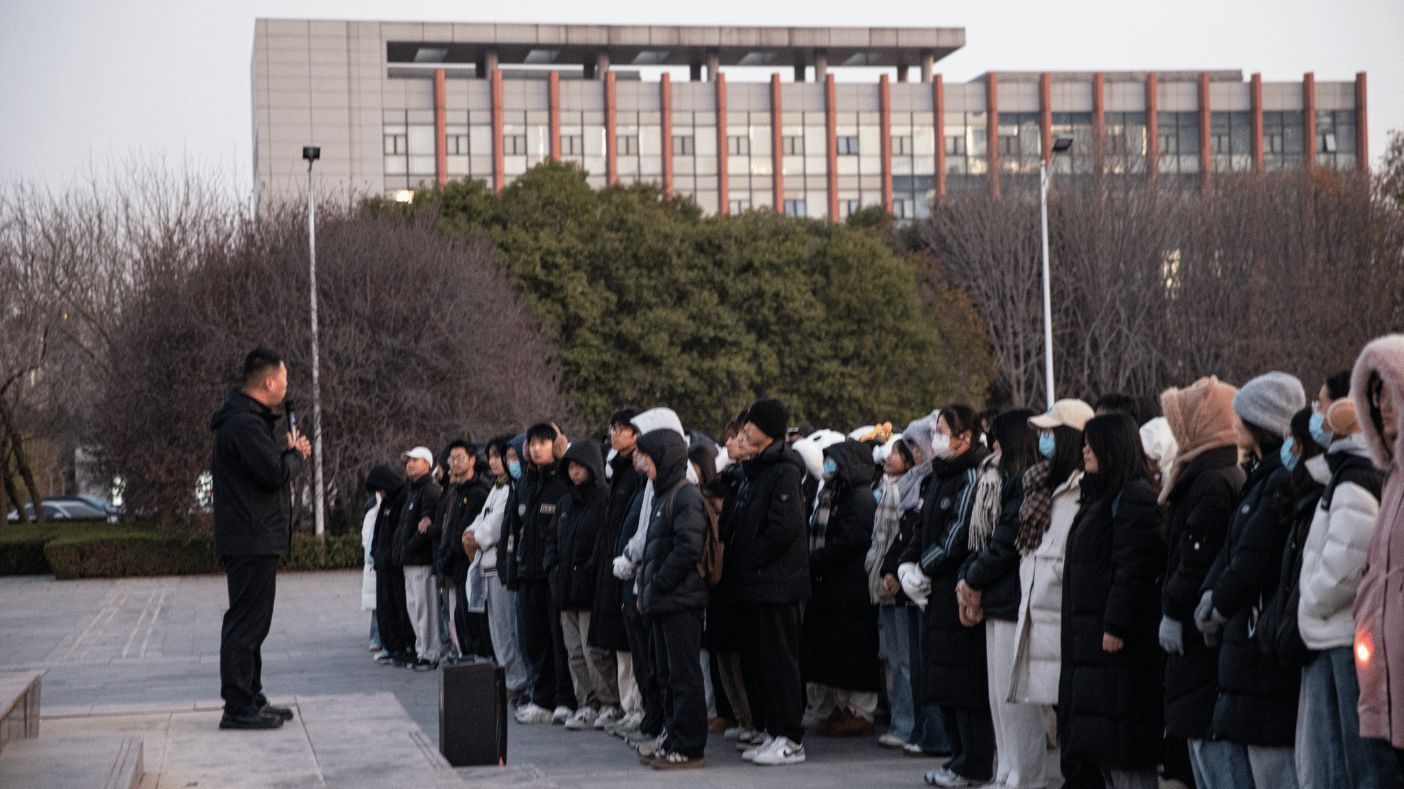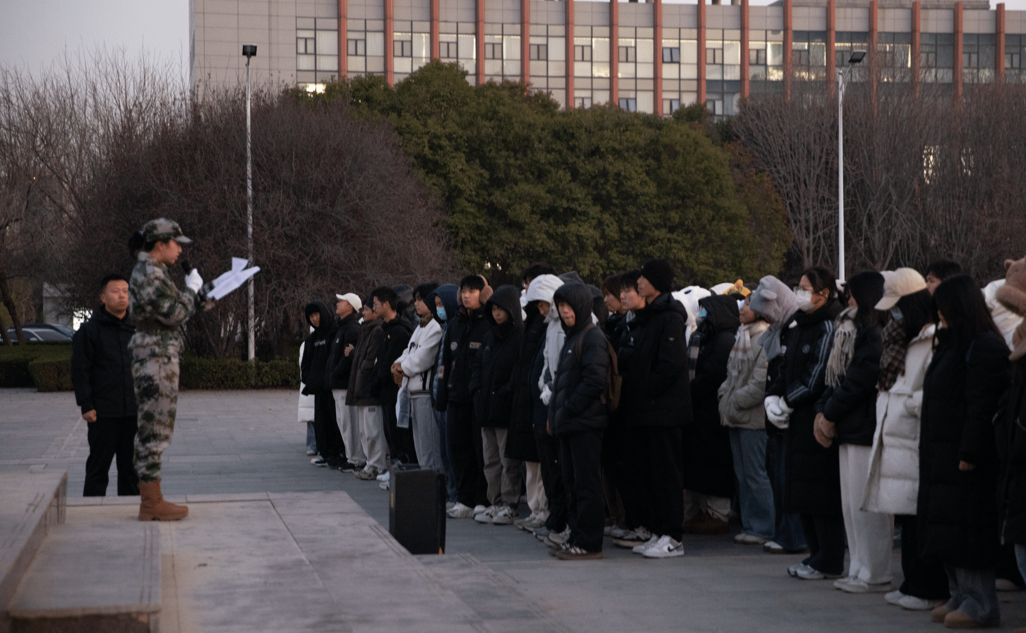 晨曦破晓,寒风刺骨。早晨6:30,全体师生整齐列队,肃穆伫立在校园广场。伴随着嘹亮的口号声,国旗护卫队昂首挺胸、步伐铿锵,护送着鲜红的五星红旗。当激昂的《义勇军进行曲》奏响,五星红旗迎着晨光缓缓升起,全体师生神情庄重,肃立行注目礼,高唱国歌。国旗高高飘扬,辉映着青春朝气,它承载着家国希望与时代担当,鼓舞着每一位学子砥砺前行、逐梦远航。