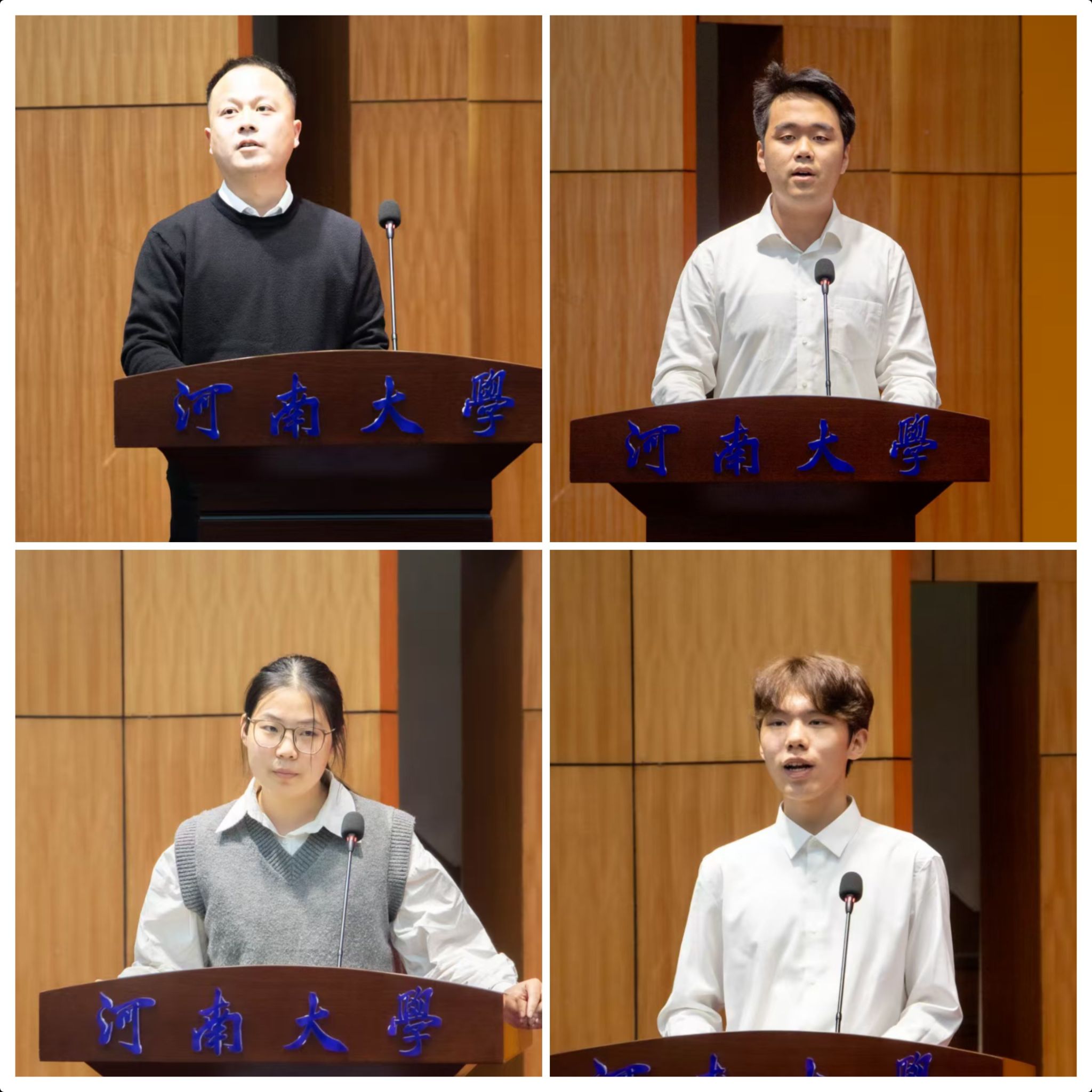 在校生代表、2022级生物学专业博士生李凯文、2023级生物工程专业本科生肜宗廷分享了在学校学习的经验,希望新同学保持好奇心,主动参与实验科研、学科竞赛;与导师加强沟通交流,把握机会,敢于尝试,迎接挑战。新生代表、2025级生物学专业硕士生张庆蕾、2025级生物科学林伯襄实验班本科生李非凡分享了初入河大的感受,必将以谦逊之心求知,以务实之态做事,以积极之姿成长,成为思国家需、做国家事的新时代青年。