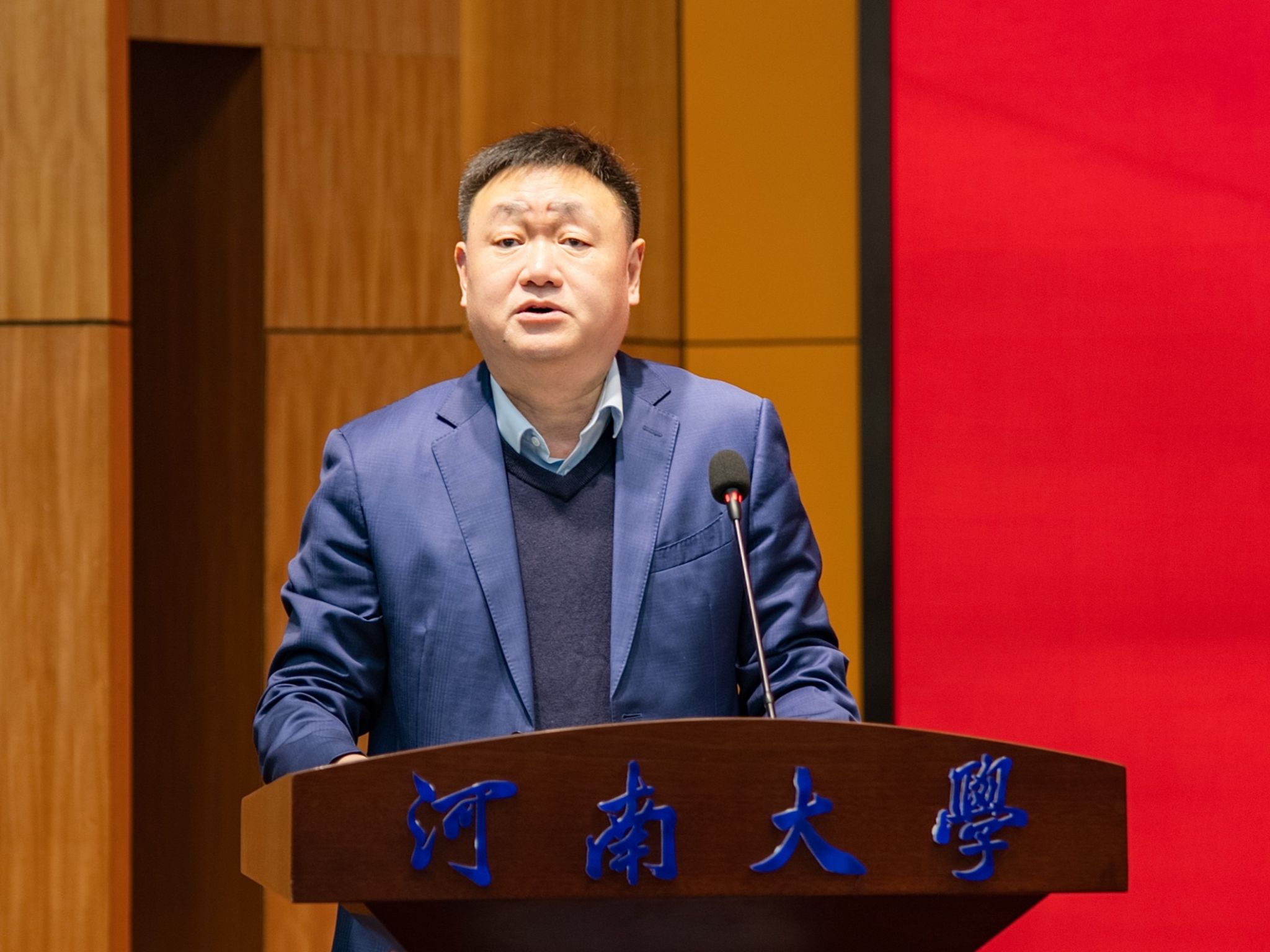 张立新在致辞中代表学院、重点实验室向各位新同学表示热烈欢迎。他表示,在加快建设教育强国目标进程中,河南大学紧抓国家“双一流”、河南“双航母”关键发展期,确立了研究型综合性国际化一流大学的办学新目标,悠久的办学历史、鲜明的办学特色、雄厚的科研实力,为学生成长成才提供了营养丰富的土壤。他强调,河南大学生物学学科沃土,源自艰苦创业的不懈奋斗,源自历代生科人的传承接力,源自特色的人才培养模式。他希望同学们要心怀祖国,勇担使命,将个人理想融入民族复兴的伟业之中,以青春和才智,为科学进步、国家富强贡献力量;要珍惜时光,学会自律与自省,立大志、明大德、成大才、担大任,在自由与约束之间找到平衡,在学习与生活中保持清醒;要勇于探索,持续创新,敢于质疑、善于思考,在科研实践中发现问题、解决问题。