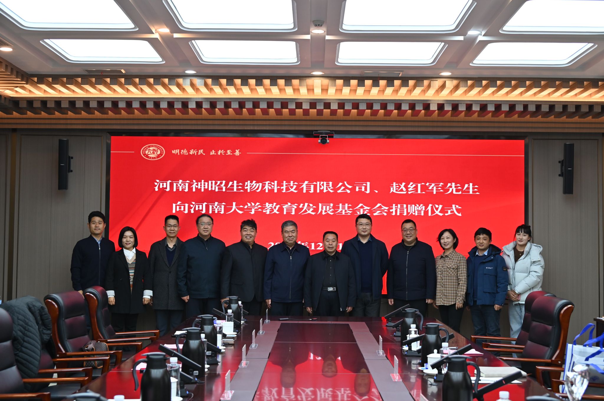 12月12日下午,河南神昭生物科技有限公司、赵红军先生(个人)捐赠仪式在郑州龙子湖校区友兰学堂中楼305会议室举行。河南神昭生物科技有限公司副总经理祖士江、采购总监谷庆民,个人捐赠代表赵红军,校党委书记季波,副校长、校友与教育发展基金工作部部长乔梁,教育发展基金会秘书长刘婷及研究生院、生命科学学院相关人员参加活动。仪式由生命科学学院党委书记梁建忠主持。