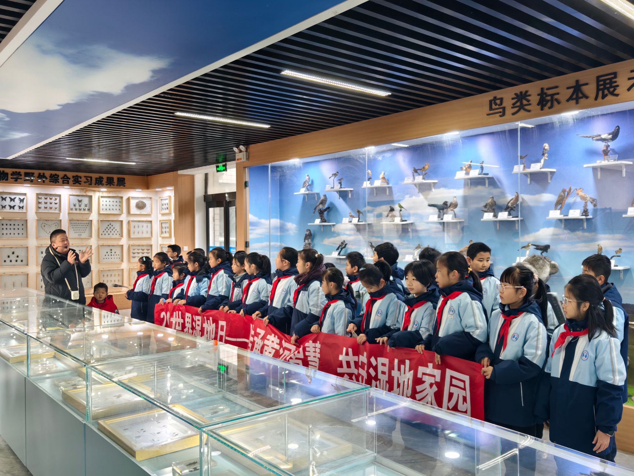 2月1日上午,河南大学附属小学师生及家长代表走进学院标本馆,参加专题科普活动。赵海鹏向来访师生及家长详细介绍了世界湿地日的设立背景与重要意义,系统讲解了黄河开封段湿地的类型特征、地理分布及生态功能,并重点分享了该区域常见鸟类资源及其保护现状。春桐学社指导教师高凯带领志愿者团队全程提供参观引导与专业讲解服务,保障活动有序高效开展。