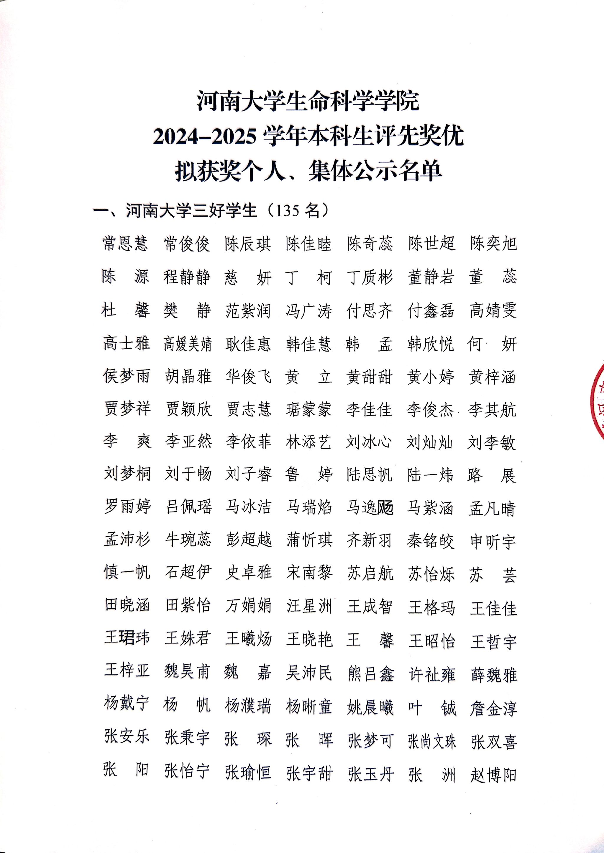 开云kaiyun网页版官网2024-2025学年本科生评先奖优拟获奖个人、集体公示名单